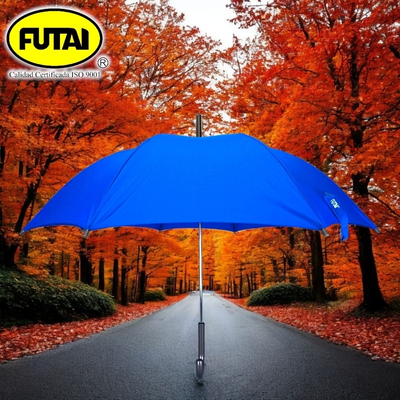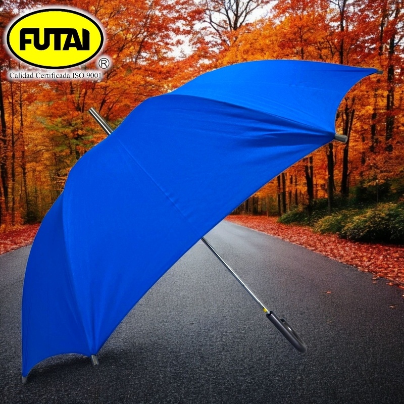 Sombrilla semi automática, ocho varillas de polímero reforzado con fibras (FRP), punta plástica, puño curvo, tejido pongee 190T, tamaño 23 pulgadas (59cm) de radio. Disponible en variedad de colores lisos.